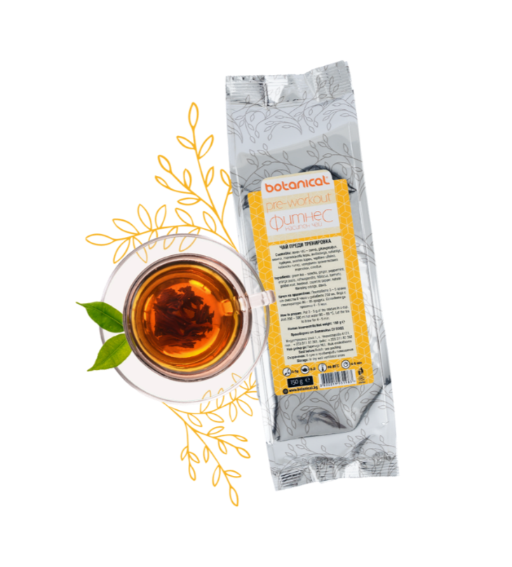 Тренировките в комбинация с приема на достатъчно течности са най-добрият начин да поддържаме тялото и ума си в добра форма. Botanical разработи специална серия продукти за фитнес, част от която е чаят Pre-workout. Той спомага за по-високата издръжливост по време на физическа активност, повишава тонуса и засилва метаболизма, което спомага за по-бързото изгаряне на излишните мазнини и повишаване ефективността на тренировката.